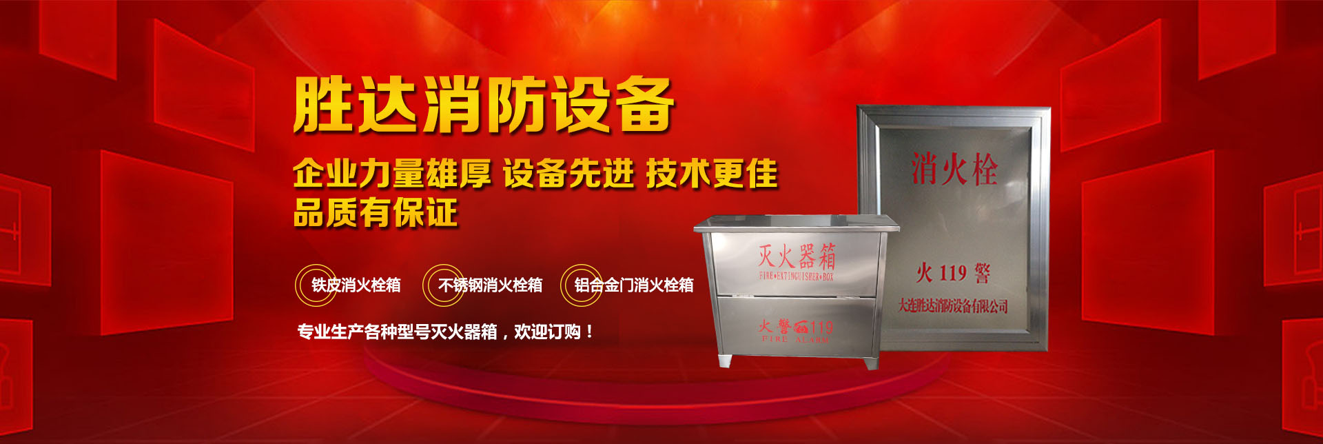 大連勝達(dá)消防設(shè)備有限公司本公司企業(yè)力量雄厚、設(shè)備先進(jìn),生產(chǎn)的所有消防產(chǎn)品均符合國家GB14561—J標(biāo)準(zhǔn),品質(zhì)有保證。我公司地理位置優(yōu)越,位于大連市甘井子區(qū)西北路847號(hào)交通便捷,公司專業(yè)生產(chǎn)各種型號(hào)滅火器箱、消火栓箱、鐵皮消火栓箱、不銹鋼消火栓箱、鋁合金門消火栓箱。消火栓箱系列產(chǎn)品,全部按照國家標(biāo)準(zhǔn)和行業(yè)標(biāo)準(zhǔn)進(jìn)行生產(chǎn),并通過國家合格鑒定,得到了國家固定滅火系統(tǒng)和耐火構(gòu)件質(zhì)量監(jiān)督檢驗(yàn)中心的產(chǎn)品認(rèn)證和產(chǎn)品形式報(bào)告書。我們的消火栓箱系列產(chǎn)品具有外形美觀、結(jié)構(gòu)先進(jìn)、開啟靈活、使用可靠、消火應(yīng)急燈具標(biāo)志清晰、光色好、功耗低、使用壽命長、安裝使用簡便,可廣泛應(yīng)用于高層建筑和工業(yè)等一些公關(guān)場(chǎng)所使用。